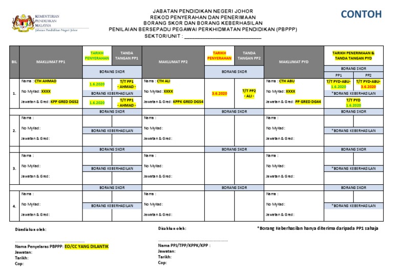 Contoh Pengisian Rekod Serah Terima Skor Dan Keberhasilan Pdf